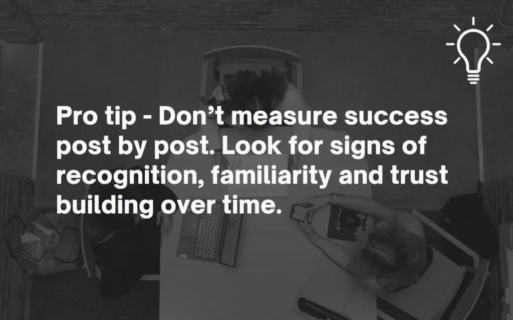 Progress can sometimes be hard to gauge when the aim is influence. You can’t necessarily measure success with short-term engagement numbers that the platform provides. Influence tends to build through increased recognition and stronger brand associations.